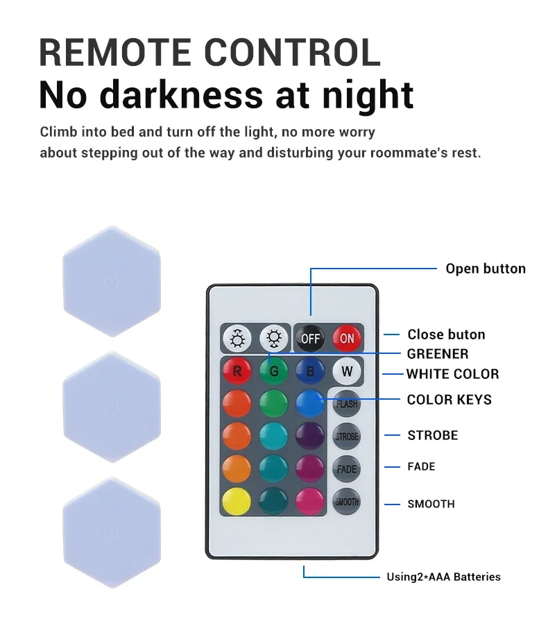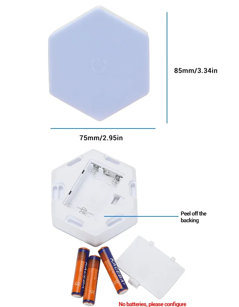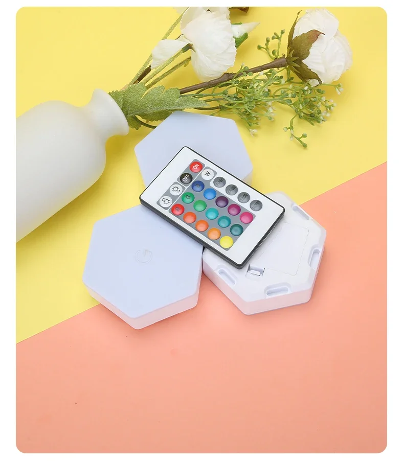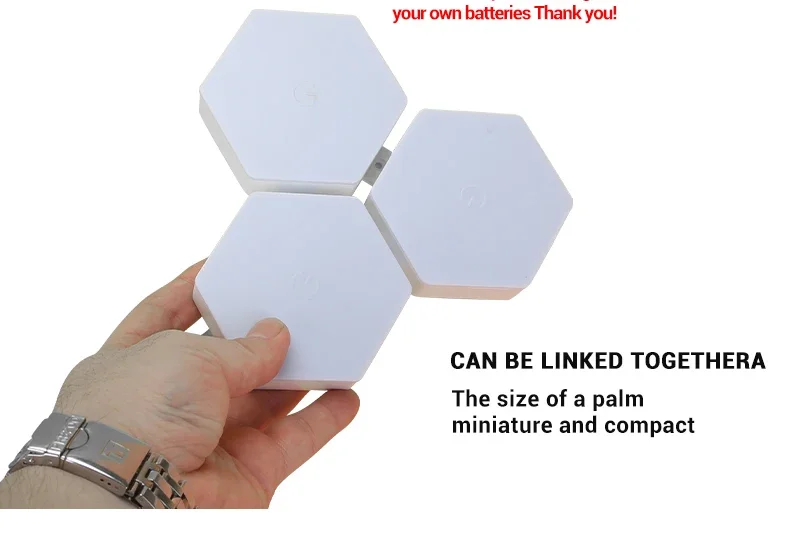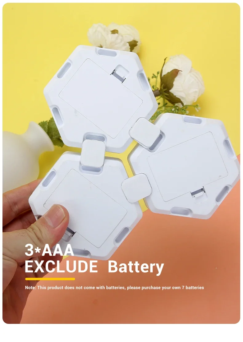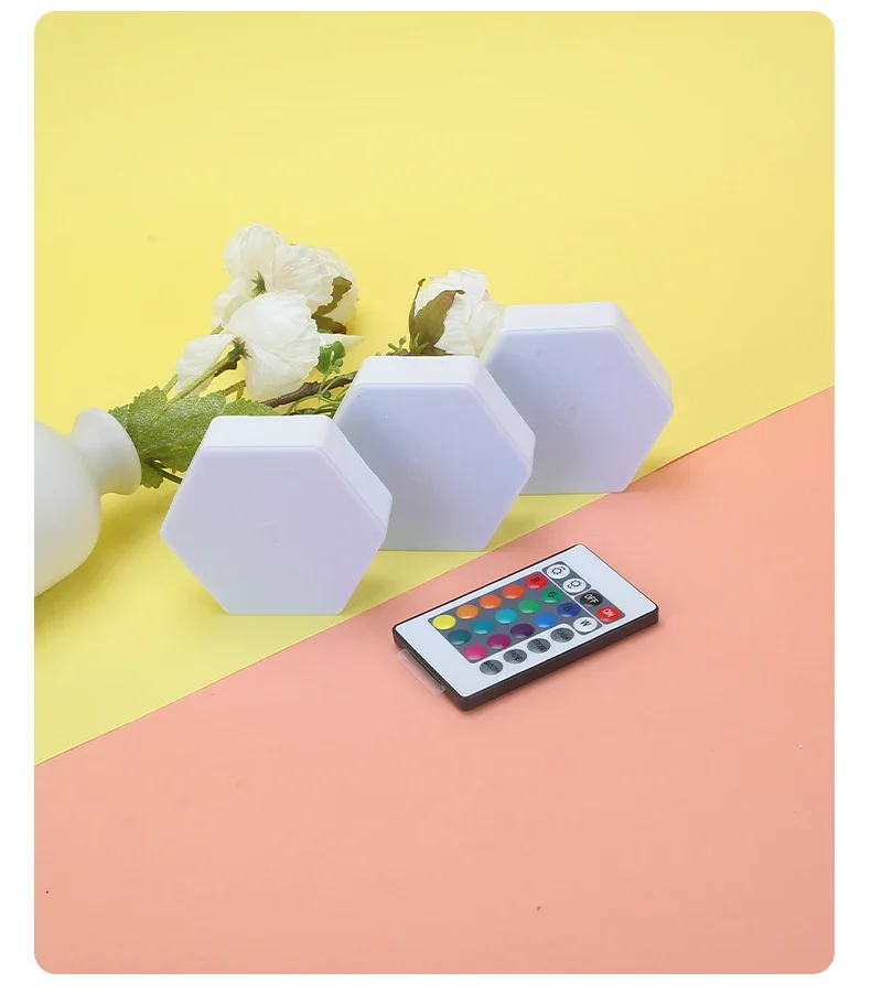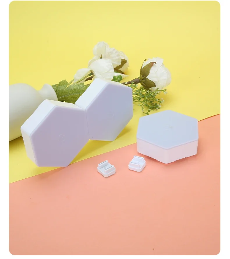 Cada módulo hexagonal se conecta por ímãs integrados, permitindo montar diferentes formatos e padrões.